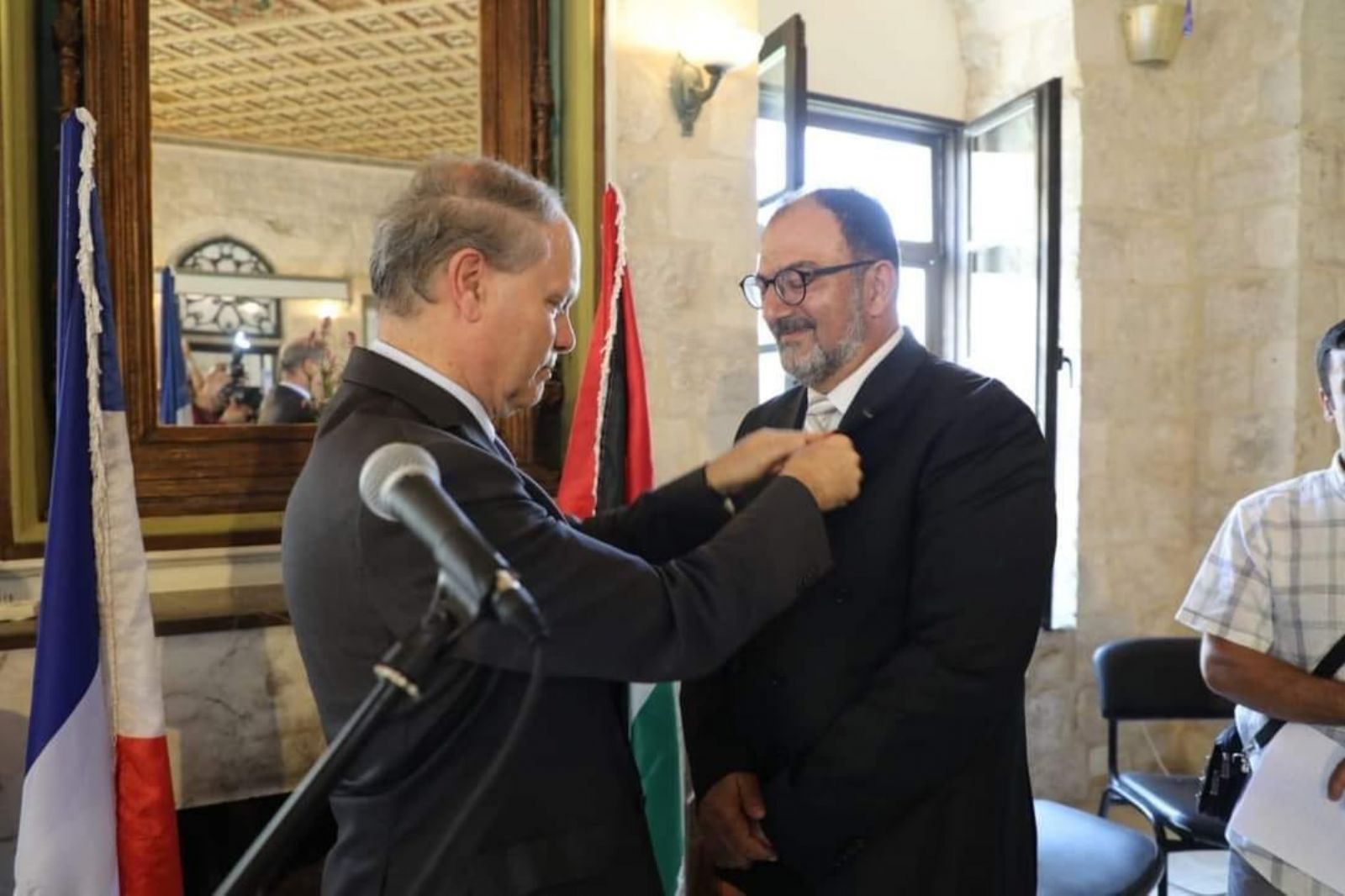 مُنِح السيد أيمن الشكعة مدير مركز تنمية موارد المجتمع التابع لبلدية نابلس، وسام جوقة الشرف الفرنسية برتبة فارس، تقديرا لجهوده في تعزيز التعاون الثقافي والاجتماعي المشترك بين فلسطين والجمهورية الفرنسية، والذي بدأ قبل أكثر من 35 عاما.